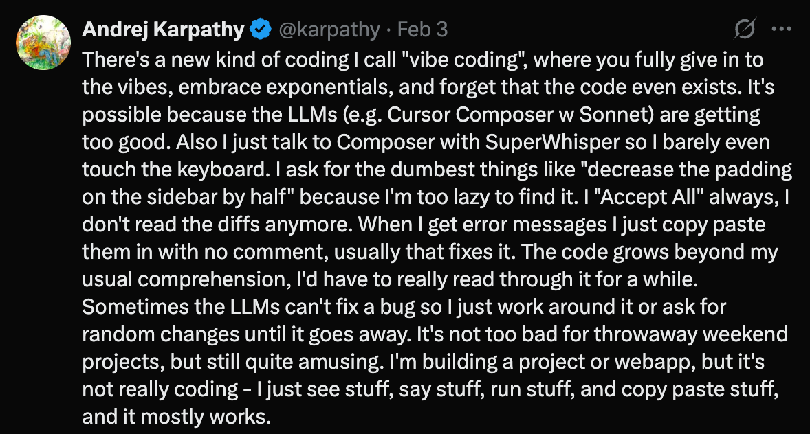 Tim Griffiths has also been playing with these vibe coding tools, and he put it this way: